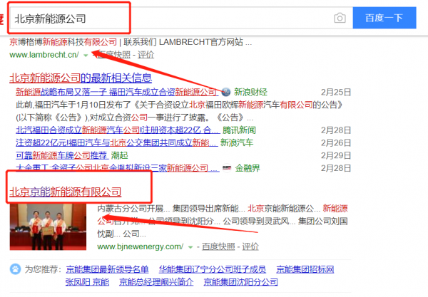 北京京能新能源有限公司與我司簽下百度霸屏協議