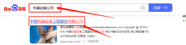 中國(guó)機(jī)*設(shè)備工程股份有限公司百度快照排名案例欣賞