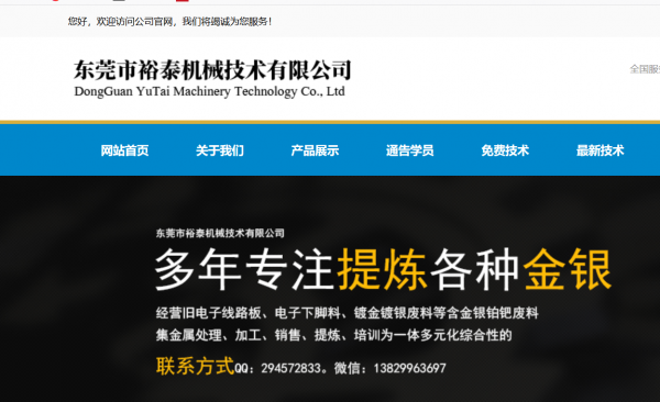 東莞市裕泰機械技術有限公司,是集金屬處理、加工、銷售、提煉、培訓為一體多元化綜合性的。我們主要經營舊電子線路板、電子下腳料、鍍金鍍銀廢料等含金銀鉑鈀廢料。QQ:294572833。微信:13829963697從成立以來,一直致力于如何用短的時間把每一位學員培訓成真正行業能手作為我們不斷奮斗的目標,在長時間的專業磨礪和實踐當中我們攻破了一道道技術難關,再加上我們大膽創新的理念以及無數次的反復實驗而總結出目前新、科學、簡單的技術成果同時也具備4個之:1.再利用率高;2.成本低;3.時間短:4.操作簡單的特點。針對不同文化程度的人群,我們憑借著扎實的技術功底,科學的通過對藥劑的替換和一些操作流程的簡化,大大降低了學習技術的難度,操作的整個流程通俗易懂,簡單明了,省時,省力,省材料,即便只有小學文化的人看過我們的資料和操作流程后都可以輕而易舉的學會和掌握。經過前期一些學員的反饋,在這里我們可以嚴肅的,鄭重的向大家承諾:該技術的真實、原創、可靠和實用,對所有的學員沒有任何的技術保留,所用的藥劑都無需氰化物,用的都是經過改良后的普通藥劑,在全國所有的化工店都可以輕易購買得到。而且價格也很便宜,我們所有技術都是經過我們技術員長期以來在實踐生產中積累的經驗和取全國各家技術之所長的結果。本技術適合小型的家庭作坊,也適合大量工廠流水線式生產,規模可大可小。無論任何含金銀的材料,含量多少,哪怕只有極少的0.001克,用我們的技術都可以不費吹灰之力就能提取出來,最終提取出來的不管是黃金還是白銀,純度可以達到99.9%或以上(千足金銀,可拿到專業機構檢測,不能達標學費全免)但提取每克黃金所需的藥劑成本只需低至幾毛錢,(白銀更低至幾分錢每克),我們有專業的提煉場地和實驗場地,有師傅現場手把手,一對一式教學,沒有時間限制,直到學懂、學熟練、學滿意為止,如單學金、提銀、或是提鈀、提鉑的話,基本上一兩天就能完全掌握學會。歡迎全國各地對該行業感興趣的朋友前來參觀考察,初學者無論您學了一天還是兩天,在這期間如覺得技術難學,或對技術有任何質疑都可以選擇退出,可以退還全部學費。或者學會回去之后感覺學的還不夠熟練都可以隨進回來免費再學到熟練滿意為止。一次學會,終生免費技術指導+終生免費技術升級。如有擔心受騙的朋友,可委托居住在東莞或深圳工作的親戚朋友根據地址前來查看,也可以自已過來查看。