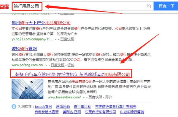 東莞市途派運動用品有限公司合作中,對這個公司所經(jīng)營的騎行用品這個行業(yè)的搜索引擎優(yōu)化推廣積累了豐富的經(jīng)驗;同時在該行業(yè)的搜索引擎優(yōu)化推廣等多元化的騎行用品領(lǐng)域中也有很多的成功的案例;但愿通過我們的合作,能夠幫助到合作伙伴在同行業(yè)中遙遙領(lǐng)先。