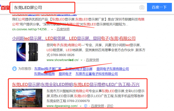 我們公司與東莞市萬興智能科技有限公司合作中,對這個公司所經營的LED屏這個行業提供了關鍵詞搜索排名,與該公司的合作,更多的客戶讓我們公司為其提供關鍵詞搜索排名,通過每一次合作,我們公司不斷完善自己,同時希望合作伙伴在經營的路上越來越好。