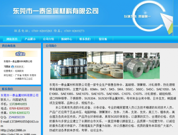 東莞市一*金屬材料有限公司選用我司企業(yè)的網(wǎng)站設(shè)計(jì)優(yōu)化產(chǎn)品,其seo關(guān)鍵詞為高碳鋼、彈簧鋼、冷軋鋼帶、熱處理鋼帶等高精密材料 定制有針對(duì)性的SEO優(yōu)化執(zhí)行方案,根據(jù)盈利模式和核心產(chǎn)品選擇更適合的精準(zhǔn)關(guān)鍵詞。配備專業(yè)SEO優(yōu)化團(tuán)隊(duì),項(xiàng)目前期做好市場(chǎng)、企業(yè)定位、目標(biāo)用戶、盈利模式分析, 東莞市一*金屬材料有限公司成立于2016年,是經(jīng)東莞市市場(chǎng)監(jiān)督管理局審核的有資質(zhì)的公司,其統(tǒng)一社會(huì)信用代碼:91441900**065101101P。公司地址:東莞市大朗鎮(zhèn)洋烏村校椅圍五路52號(hào)