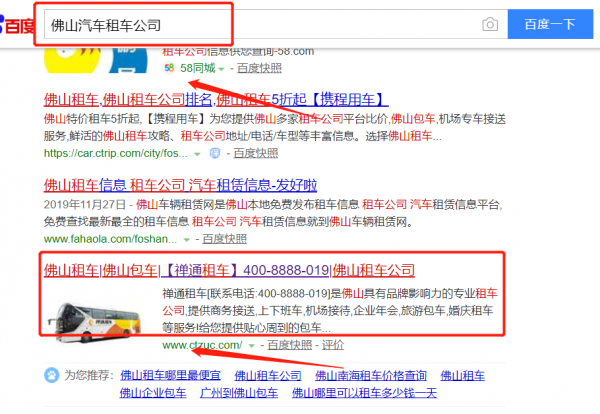 我們公司與佛山市禪通汽車服務有限公司合作中,對這個公司所經營的汽車租車這個行業提供了百度快照排名,與該公司的合作,更多的客戶讓我們公司為其提供百度快照排名,通過每一次合作,我們公司不斷完善自己,同時希望合作伙伴在經營的路上越來越好。
