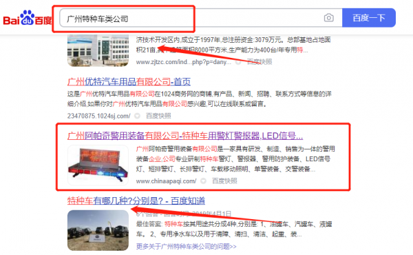 我們公司與廣州阿*奇警用裝備有限公司合作中,對(duì)這個(gè)公司所經(jīng)營(yíng)的特種車類這個(gè)行業(yè)提供了百度排名,與該公司的合作,更多的客戶讓我們公司為其提供百度快照排名,通過每一次合作,我們公司不斷完善自己,同時(shí)希望合作伙伴在經(jīng)營(yíng)的路上越來越好。