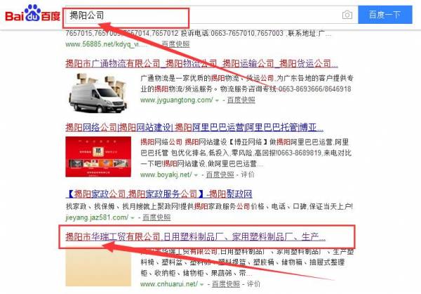 揭陽市華*工貿有限公司與我司做快速排名項目