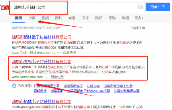 汕尾市索思電子封裝材料有限公司與我司簽下百度霸屏協議