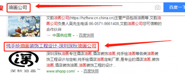 我們公司與深圳深秋油畫文化創意有限公司合作中,對這個公司所經營的油畫這個行業提供了百度快照排名,與改公司的合作,更多的客戶讓我們公司為其提供百度快照排名,通過每一次合作,我們公司不斷完善自己,同時希望合作伙伴在經營的路上越來越好。