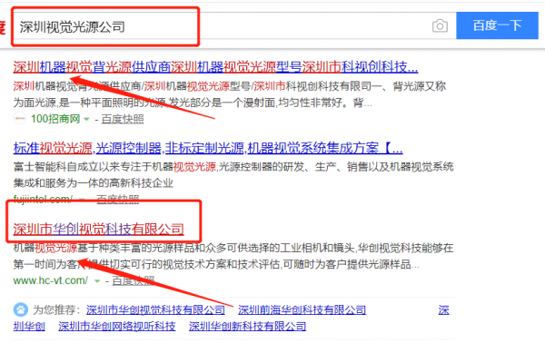 我們公司與深圳市華創視覺科技有限公司合作中,對這個公司所經營的視覺光源這個行業提供了搜索引擎優化推廣,與該公司的合作,更多的客戶讓我們公司為其提供搜索引擎優化推廣,通過每一次合作,我們公司不斷完善自己,同時希望合作伙伴在經營的路上越來越好。