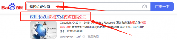 深圳市光*影視文化傳媒有限公司選用我司企業網站設計優化產品,其seo關鍵詞為影視傳媒,定制有針對性的SEO優化執行方案,根據盈利模式和核心產品選擇更適合的精準關鍵詞。配備專業SEO優化團隊,項目前期做好市場、企業定位、目標用戶、盈利模式分析 深圳市光*影視文化傳媒有限公司成立于2014年,是經XX市市場監督管理局審核的有資質的公司,其統一社會信用代碼: 9144030**03118507312。公司地址:深圳市龍崗區龍崗街道南聯路73號銘泰商務中心805 。