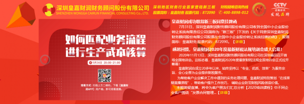 深圳皇*財潤財務顧問股份有限公司,創立于2001年,于2017年8月成功登陸新三板,證券代碼872090,證券簡稱:皇嘉財務。皇嘉財潤主要業務范圍:財務顧問、稅務顧問、工商代理、代理記賬,以及會計師事務所、稅務師事務所、評估公司客戶服務外包等,始終以“專業、優質、效率”為服務宗旨,為您的企業在財務顧問、記賬報稅、工商稅務代辦、日常財務咨詢、新三板及IPO上市顧問、稅務咨詢、整賬、會計師事務所、稅務師事務所、評估師公司等中介機構服務外包等提供更專業、優質的服務!