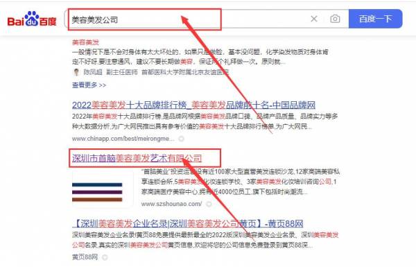 深圳市首*美容美發藝術有限公司萬詞霸屏排名效果展示