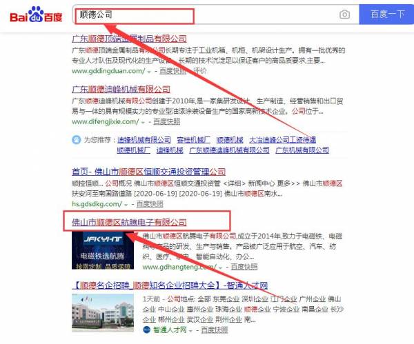 佛山市順德區*騰電子有限公司選用我司企業機械設備行業的網站優化產品,其SEO關鍵詞有 佛山市順德區*騰電子有限公司、航騰電磁鐵、電吸鐵、氣閥。其特點是用很合適的展示方式、展示效果、站點框架,把客戶及其用戶很關心的問題突出表現;并以簡潔明朗的設計風格,清晰展現公司水平實力,確保一秒抓住目標用戶眼球,給用戶留下良好的第一印象。佛山市順德區*騰電子有限公司成立于2014年,是經順德市市場監督管理局審核的有資質的公司,其統一社會信用代碼: 91440606323296**8W。公司地址:佛山市順德區容桂容里居委會昌富西路3號8座603、604