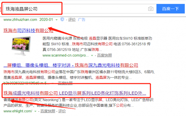 珠海成盛光電科技有限公司選用我司企業液晶屏的網站優化產品,其SEO關鍵詞有液晶屏。通過對搜索引擎目標關鍵詞優化,使目標網站的相關信息顯示在百度首頁,為企業挖掘更多的潛在客戶的同時帶來海量的商機。珠海成盛光電科技有限公司成立于2011年,是經珠海市市場監督管理局審核的有資質的公司,其統一社會信用代碼:91440400572444942T。公司地址:廣東省珠海市香洲梅華西路2372號香洲區科技工業區25號A棟二樓。