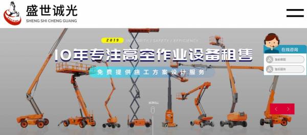 北京盛世誠光機械設備租賃有限公司選用我司企業設備租賃行業的網站優化產品,其SEO關鍵詞有 盛世誠光,升降車.升降機,升降平臺,高空作業車,高空作業平臺,登高車,舉高車,剪叉式升降機。其特點是用很合適的展示方式、展示效果、站點框架,把客戶及其用戶很關心的問題突出表現;并以簡潔明朗的設計風格,清晰展現公司水平實力,確保一秒抓住目標用戶眼球,給用戶留下良好的第一印象。北京盛世誠光機械設備租賃有限公司成立于2009年,是經北京市市場監督管理局審核的有資質的公司,其統一社會信用代碼:911101156977355080 。公司地址:北京市大興區欣美街嘉悅廣場7號樓1510