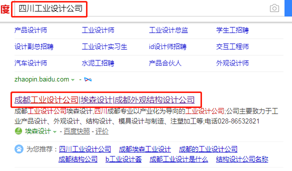成都埃森工業(yè)產(chǎn)品設(shè)計有限公司選用我司企業(yè)美容行業(yè)的網(wǎng)站優(yōu)化產(chǎn)品,其SEO關(guān)鍵詞有產(chǎn)品設(shè)計等。采用全球領(lǐng)先的關(guān)鍵詞三維云計算系統(tǒng),智能關(guān)鍵詞報價查詢,徹底杜絕高價、朦朧價。自助提交優(yōu)化任務(wù),自由設(shè)定指定關(guān)鍵詞,指定排名位置,避免傳統(tǒng)銷售誘導(dǎo)。成都埃森工業(yè)產(chǎn)品設(shè)計有限公司成立于2015年,是經(jīng)錦江市場監(jiān)督管理局審核的有資質(zhì)的公司,其統(tǒng)一社會信用代碼:915101043429909214。公司地址:成都市錦江區(qū)工業(yè)園區(qū)錦華路三段88號匯融國際1棟5單元23層5號。