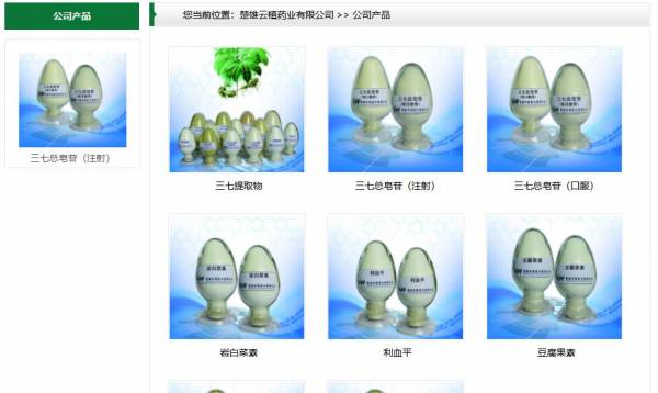 楚雄云植藥業有限公司選用我司企業中西藥品行業的網站優化產品,其SEO關鍵詞有 三七總皂苷,燈盞花素,巖白菜素,三七提取物,利血平,豆腐果素,燈盞花素。其特點是用很合適的展示方式、展示效果、站點框架,把客戶及其用戶很關心的問題突出表現;并以簡潔明朗的設計風格,清晰展現公司水平實力,確保一秒抓住目標用戶眼球,給用戶留下良好的第一印象。楚雄云植藥業有限公司成立于2016年,是經楚雄市市場監督管理局審核的有資質的公司,其統一社會信用代碼:91532300MA6K6X0T6G 。公司地址:云南省楚雄經濟技術開發區莊甸醫藥園區。