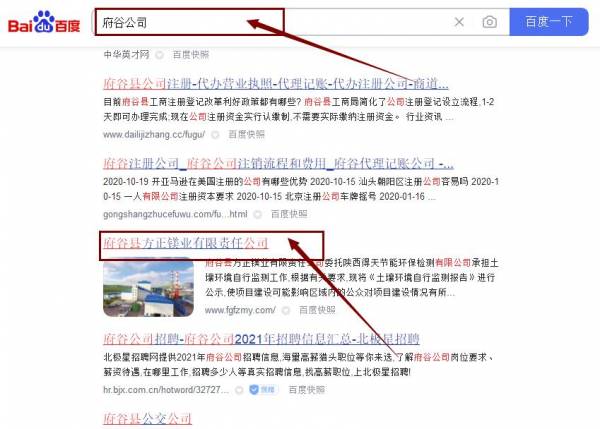 府谷縣方*鎂業有限責任公司百度關鍵詞排名最快上詞效果展示