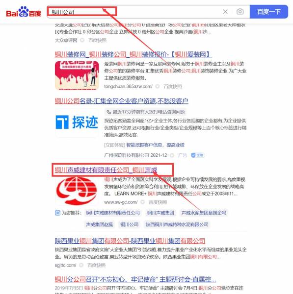 銅川聲*建材有限責任公司百度關鍵詞排名效果展示