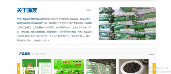 青海環*農業科技有限公司是青海省農牧廳2013年度招商引資的企業,由江蘇泰州美硼肥料有限公司和省農牧廳于2013年3月29日正式簽約并落戶青海省海北州海晏縣紅河灣工業園區,公司注冊資本1000萬元,占地面積30余畝,主要生產及銷售“環友”牌有機肥、有機無機復合肥、微生物肥料、各種農作物專用肥。