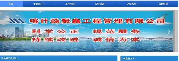 喀什淼*鑫工程管理有限公司選用我司企業建筑建材行業的網站優化產品,其SEO關鍵詞有 喀什淼*鑫工程管理有限公司   喀什水利工程,喀什工程,喀什項目,喀什招標,喀什投標,喀什公司,喀什水利。其特點是用很合適的展示方式、展示效果、站點框架,把客戶及其用戶很關心的問題突出表現;并以簡潔明朗的設計風格,清晰展現公司水平實力,確保一秒抓住目標用戶眼球,給用戶留下良好的第一印象。喀什淼*鑫工程管理有限公司成立于2011年,是經喀什市市場監督管理局審核的有資質的公司,其統一社會信用代碼:916531005**789294Y 。公司地址:新疆喀什地區喀什市夏馬勒巴格路34號1棟1號商鋪