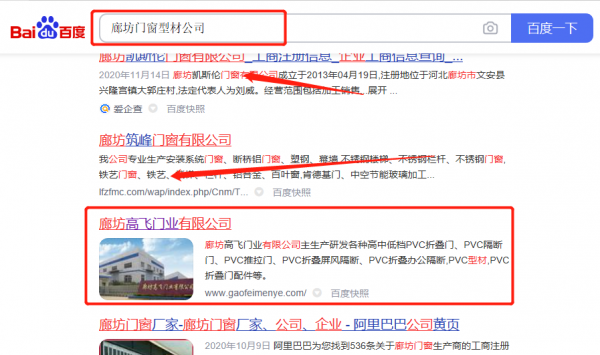 廊坊*飛門業有限公司網站推廣最快上詞效果展示