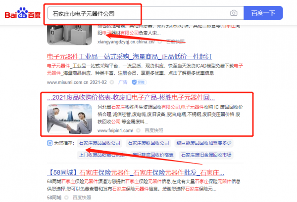 我們公司與石家莊*勝廢品回收有限公司合作中,對這個(gè)公司所經(jīng)營的電子元器件這個(gè)行業(yè)提供了優(yōu)化排名,與該公司的合作,更多的客戶讓我們公司為其提供關(guān)鍵詞搜索排名,通過每一次合作,我們公司不斷完善自己,同時(shí)希望合作伙伴在經(jīng)營的路上越來越好。