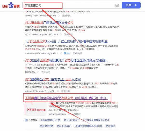 玉田縣鑫*達金屬制品制造有限公司網站推廣效果展示