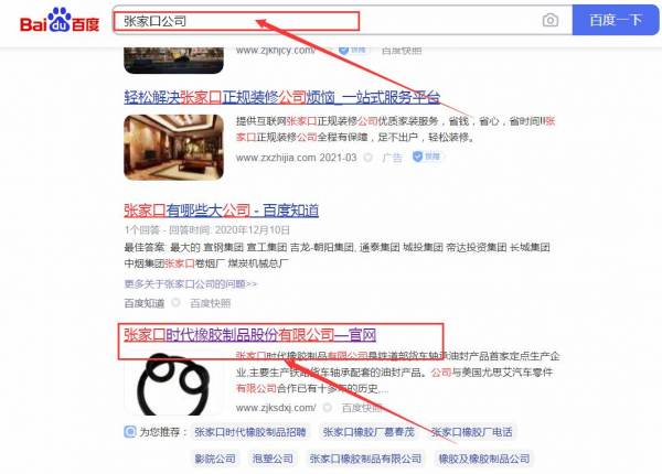 張家口時*橡膠制品股份有限公司網(wǎng)站優(yōu)化排名效果展示