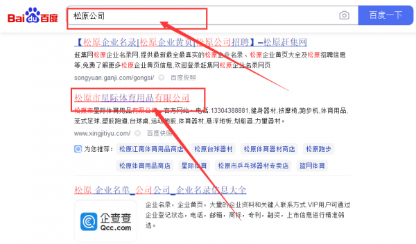 松原市星*體育用品有限公司網絡營銷排名效果展示