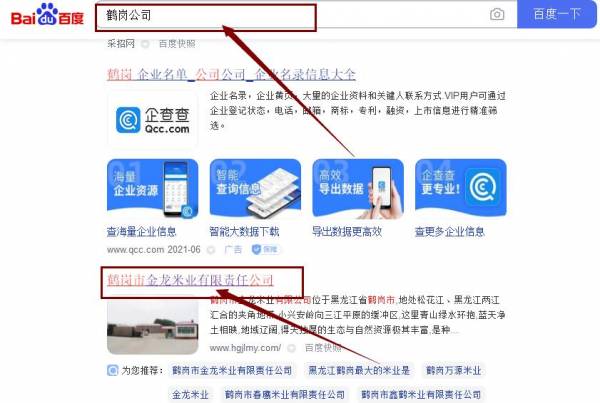 鶴崗市金*米業(yè)有限公司關(guān)鍵詞推廣最快上詞效果展示