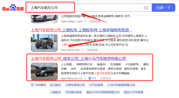 上海小*汽車租賃有限公司百度排名整合營銷推廣