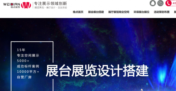 維*展示裝飾2002年創(chuàng)始于廣州,前期為商業(yè)展示空間施工制作基地,2008年正式注冊(cè)成立,是中國(guó)早期進(jìn)入展示、展覽行業(yè)的著名品牌之一,現(xiàn)已發(fā)展成為以展覽、展廳服務(wù)為主,涉足公裝、商業(yè)空間、會(huì)議活動(dòng)策劃等相關(guān)產(chǎn)業(yè)的全國(guó)知名品牌企業(yè)。