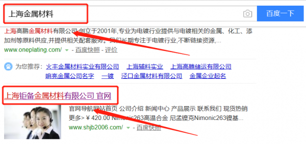 上海鉅備金屬材料有限公司選用我司企業金屬材料的網站優化產品,其SEO關鍵詞有金屬材料。快速優化系統火速推采用智能數據系統,效果一目了然,包括關鍵詞排名,消費,余額等,并通過大量的數據分析優化廣告效果。上海鉅備金屬材料有限公司成立于2005年,是經上海市市場監督管理局審核的有資質的公司,其統一社會信用代碼:91310120574185526M。公司地址:上海市奉賢區金碧路1998弄3號。