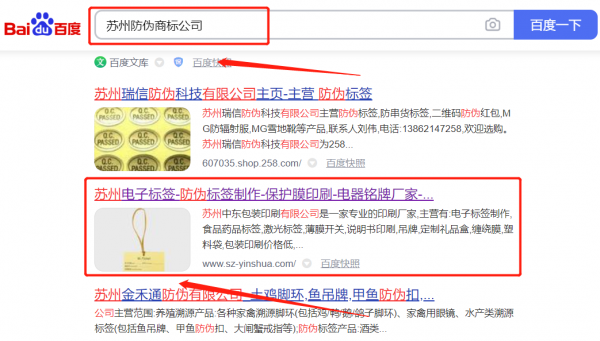 蘇州*東包裝印刷有限公司關(guān)鍵詞推廣最快上詞效果展示