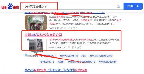 泰州鴻*洗滌設備有限公司關(guān)鍵詞排名排名效果展示