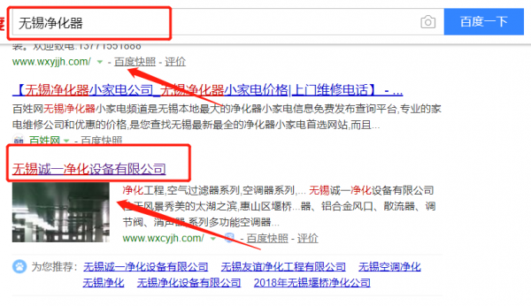 我們公司與無錫誠一凈化設備有限公司合作中,對這個公司所經營的凈化器這個行業提供了百度快照排名,與該公司的合作,更多的客戶讓我們公司為其提供百度快照排名,通過每一次合作,我們公司不斷完善自己,同時希望合作伙伴在經營的路上越來越好。