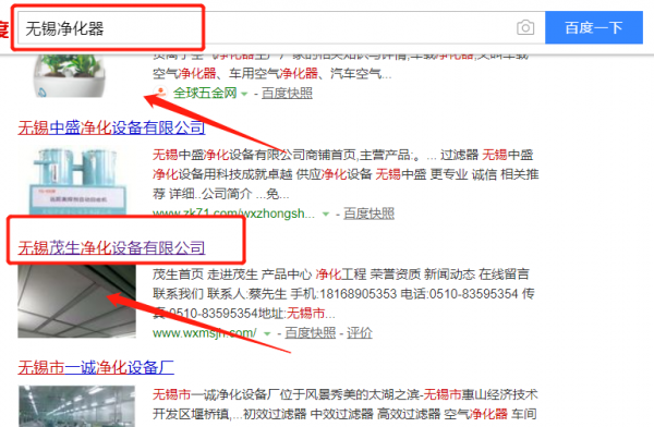 我們公司與無錫茂生凈化設(shè)備有限公司合作中,對這個公司所經(jīng)營的凈化器這個行業(yè)提供了百度快照排名,與該公司的合作,更多的客戶讓我們公司為其提供百度快照排名,通過每一次合作,我們公司不斷完善自己,同時希望合作伙伴在經(jīng)營的路上越來越好。