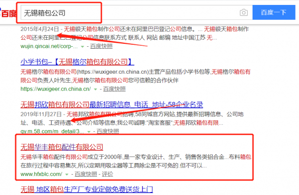 我們公司與無錫華豐箱包配件有限公司合作中,對這個公司所經營的箱包這個行業提供了百度快照排名,與該公司的合作,更多的客戶讓我們公司為其提供百度快照排名,通過每一次合作,我們公司不斷完善自己,同時希望合作伙伴在經營的路上越來越好。