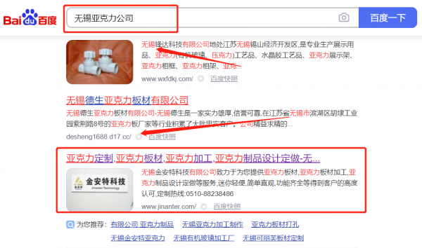 無錫金*特科技有限公司選用我司企業亞克力的網站優化產品,其SEO關鍵詞有亞克力。關鍵詞不限點擊次數,大量搜索流量直達官網;PC + 手機端搜索首頁自然排名,365天持效穩定收錄。無錫金*特科技有限公司成立于2014年,是經無錫市市場監督管理局審核的有資質的公司,其統一社會信用代碼:913202140**7714723。公司地址:江蘇省無錫市新吳區鴻山街道馬橋工業園12號。