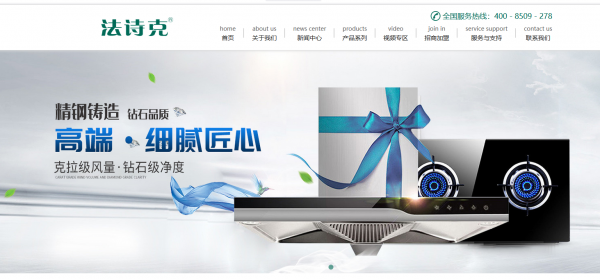 浙江法*克廚房電器有限公司網站制作建設設計案例欣賞