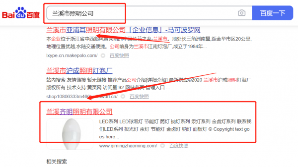 蘭溪市齊*照明電器有限公司網站SEO優化最快上詞效果展示