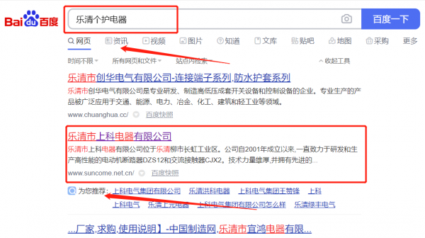樂清市上*電器有限公司關關鍵詞推廣到首頁無排名不收費