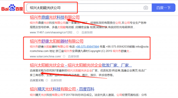 紹興市*康太陽能器材有限公司網站排名到首頁按天扣費