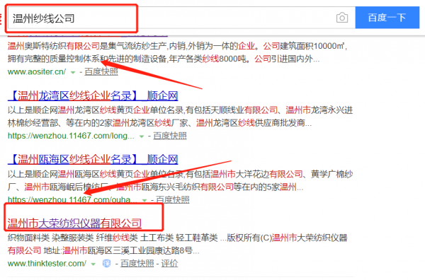 我們公司與溫州市大榮紡織儀器有限公司合作中,對這個公司所經營的紗線這個行業提供了關鍵詞搜索排名,與該公司的合作,更多的客戶讓我們公司為其提供關鍵詞搜索排名,通過每一次合作,我們公司不斷完善自己,同時希望合作伙伴在經營的路上越來越好。