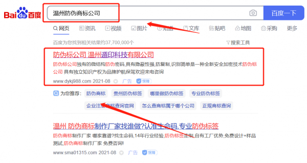 我們公司與溫州遁*科技有限公司合作中,對這個(gè)公司所經(jīng)營的防偽商標(biāo)這個(gè)行業(yè)提供了優(yōu)化排名,與該公司的合作,更多的客戶讓我們公司為其提供百度快照排名,通過每一次合作,我們公司不斷完善自己,同時(shí)希望合作伙伴在經(jīng)營的路上越來越好。