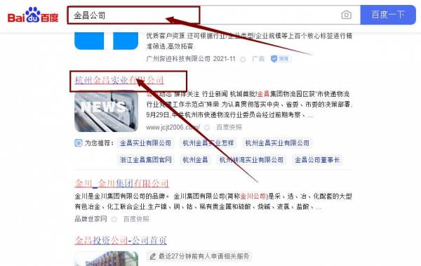 杭州金*實業有限公司網站優化最快上詞效果展示