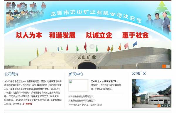 龍巖市天*礦業有限公司選用我司企業冶金礦產行業的網站優化產品,其SEO關鍵詞有 龍巖市天*礦業有限公司。其特點是用很合適的展示方式、展示效果、站點框架,把客戶及其用戶很關心的問題突出表現;并以簡潔明朗的設計風格,清晰展現公司水平實力,確保一秒抓住目標用戶眼球,給用戶留下良好的第一印象。龍巖市天*礦業有限公司成立于2007年,是經龍巖市市場監督管理局審核的有資質的公司,其統一社會信用代碼:91350800798350**4T。公司地址:福建省龍巖市新羅區曹溪鎮崎瀨村小娘坑。