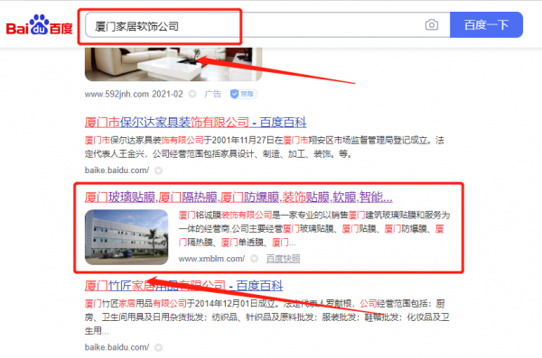廈門銘*膜裝飾有限公司關鍵詞推廣到首頁按天扣費