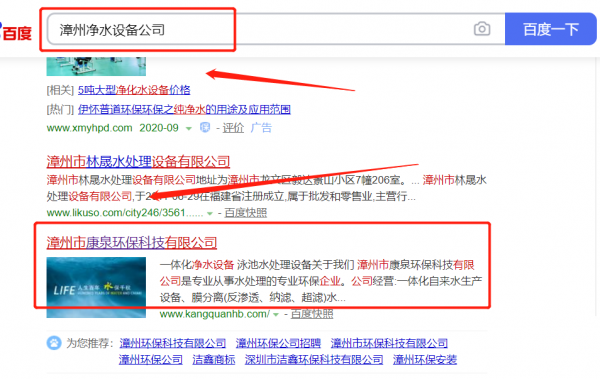 漳州市*泉環保科技有限公司關鍵詞推廣到首頁無排名不收費