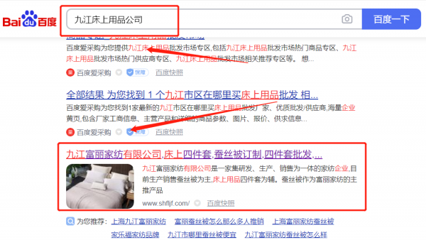 九江富*家紡有限公司網站排名排名效果展示